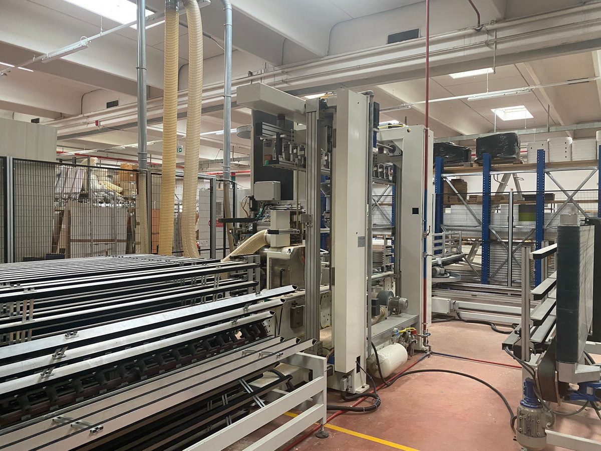 K01006C) Unloader (90° side-deplacement), with motorized conveyor for vertical outfeed of the panel.