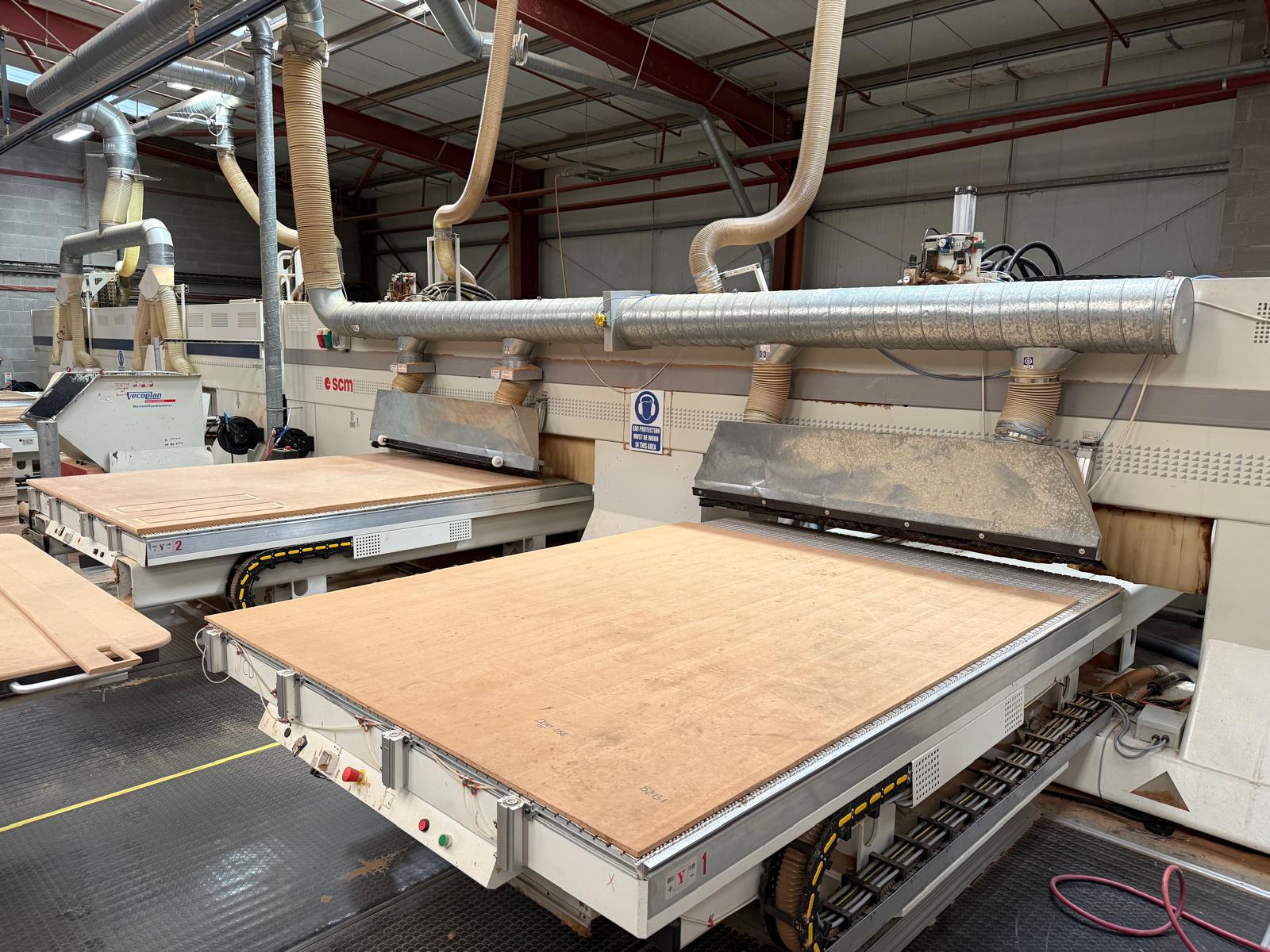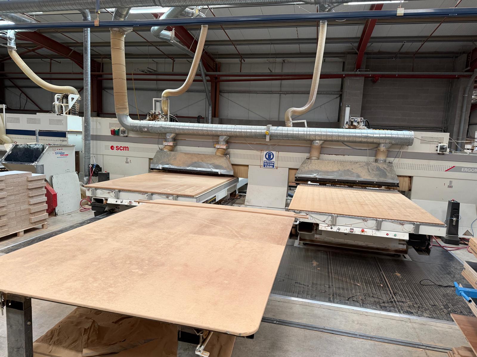 Dust extraction system mounted in front of beam work-tables