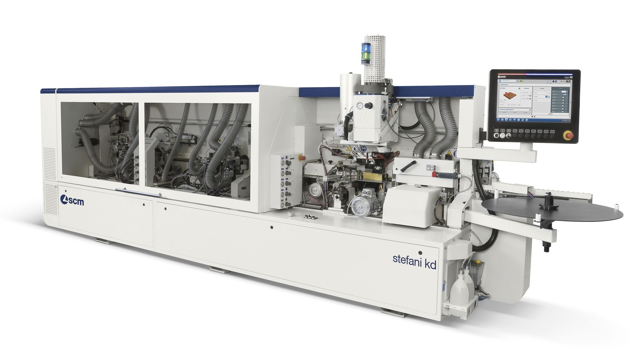 All you would expect from an edge banding machine: the use of EVA and Polyurethane glue thanks to the SGP glue pot, machining units with electronic axes allowing the automatic set up for 2 different radii, infinite thin edges and solid wood up to 12 mm.