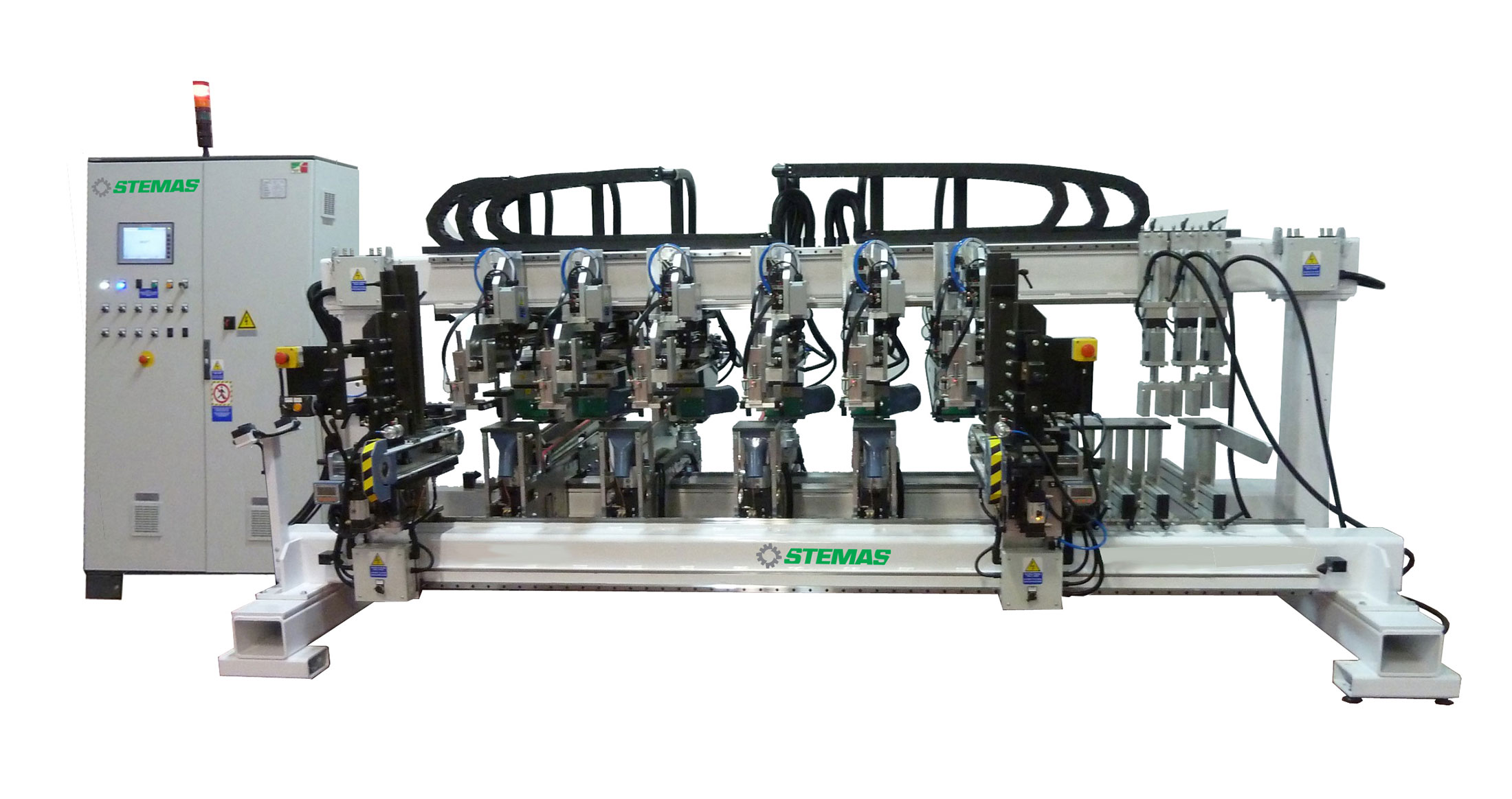 Fully customizable machinery for edge-banding, trimming, milling, 90° or 45° cutting, chamfering, hot-foil stamping, boring and dowel inserting, rolling and sanding